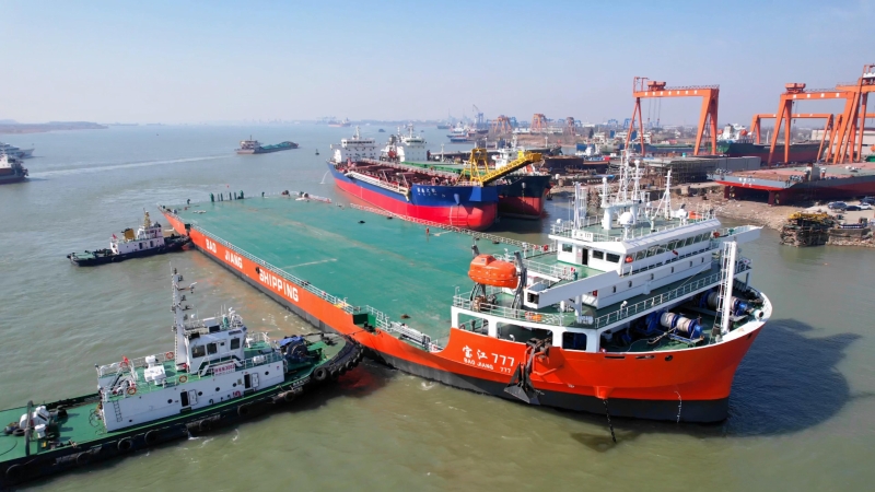 近日,在扬州海事局的全力护航下,江苏润扬船业有限公司新造船“宝江777”轮安全交付后离泊船厂码头,开航出江。据了解,该轮是目前扬州地区建造的最大吨位甲板运输船,同时也是扬州籍首艘入级中国船级社的无限航区甲板运输船,成为“扬州造”中高端船舶的又一张崭新名片。