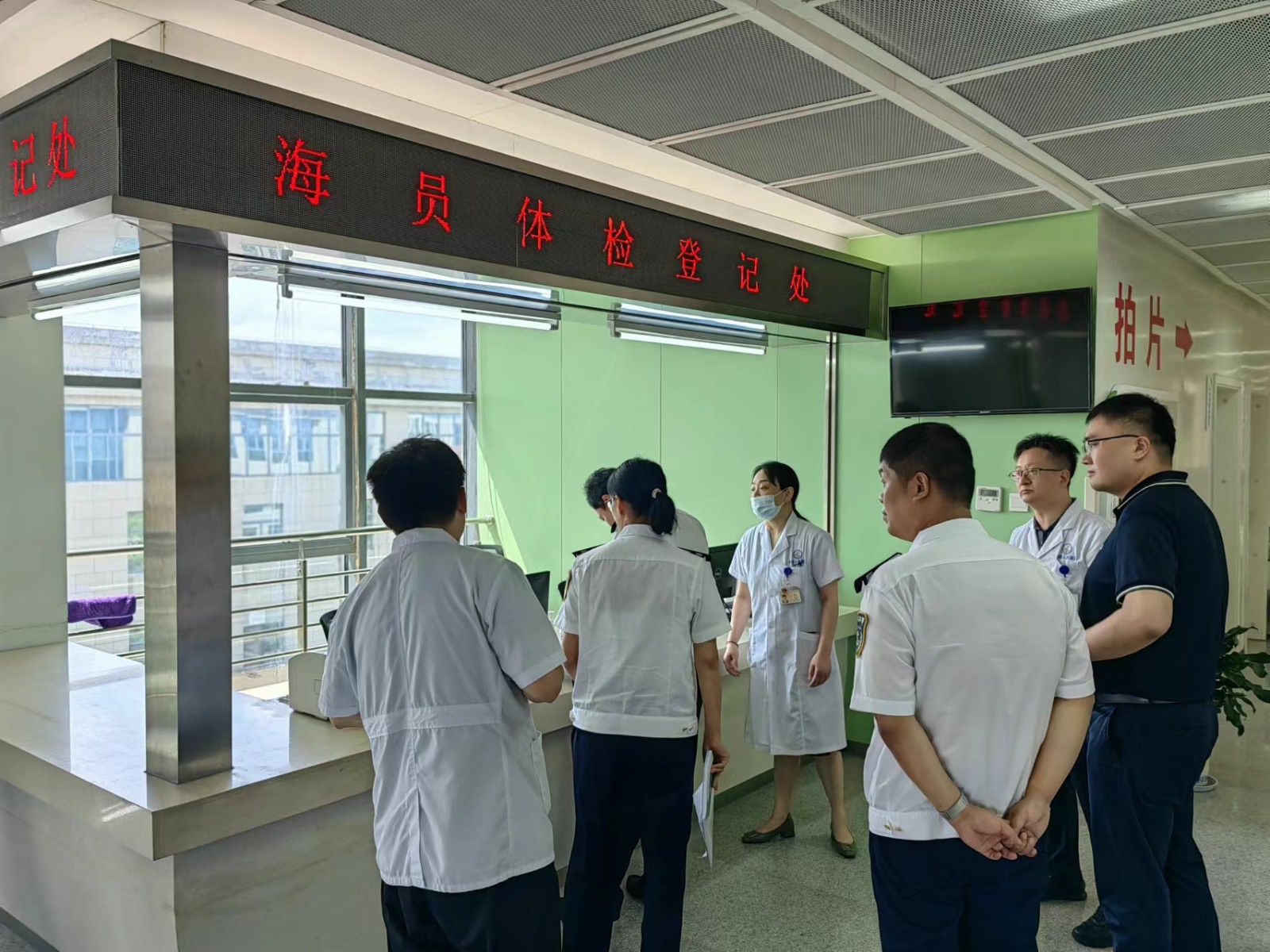为加快推进太仓市浏河人民医院申办海船船员健康体检资质,9月1日上午,江苏海事局船员处朱鹏副处长带队对浏河人民医院开展现场核验。太仓海事局金波副局长,太仓市卫健委周纯主任、孙异峰副主任,浏河镇政府孙波副镇长,浏河人民医院王耀洪院长共同参加检查。