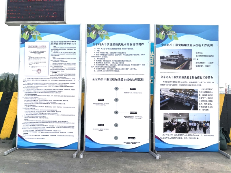 三是港区免费接收服务规范制定到位。为科学规范做好干散货船舶洗舱水免费接收工作,镇江海事局推动制定《长江镇江段内河干散货船舶货物垃圾及其洗舱水免费接收服务规范》,该规范规定了免费接收服务的总体要求、设施配置要求、服务要求、投诉处理等,首次将船舶货物垃圾纳入免费接收范围,鼓励码头单位对货物垃圾进行回收利用。作为长江段首个内河干散货船舶货物垃圾及其洗舱水免费接收服务规范,该规范已于2024年7月30日由镇江市长江水上交通安全专业委员会对外发布,为免费接收点进一步规范提升提供有力制度支撑。