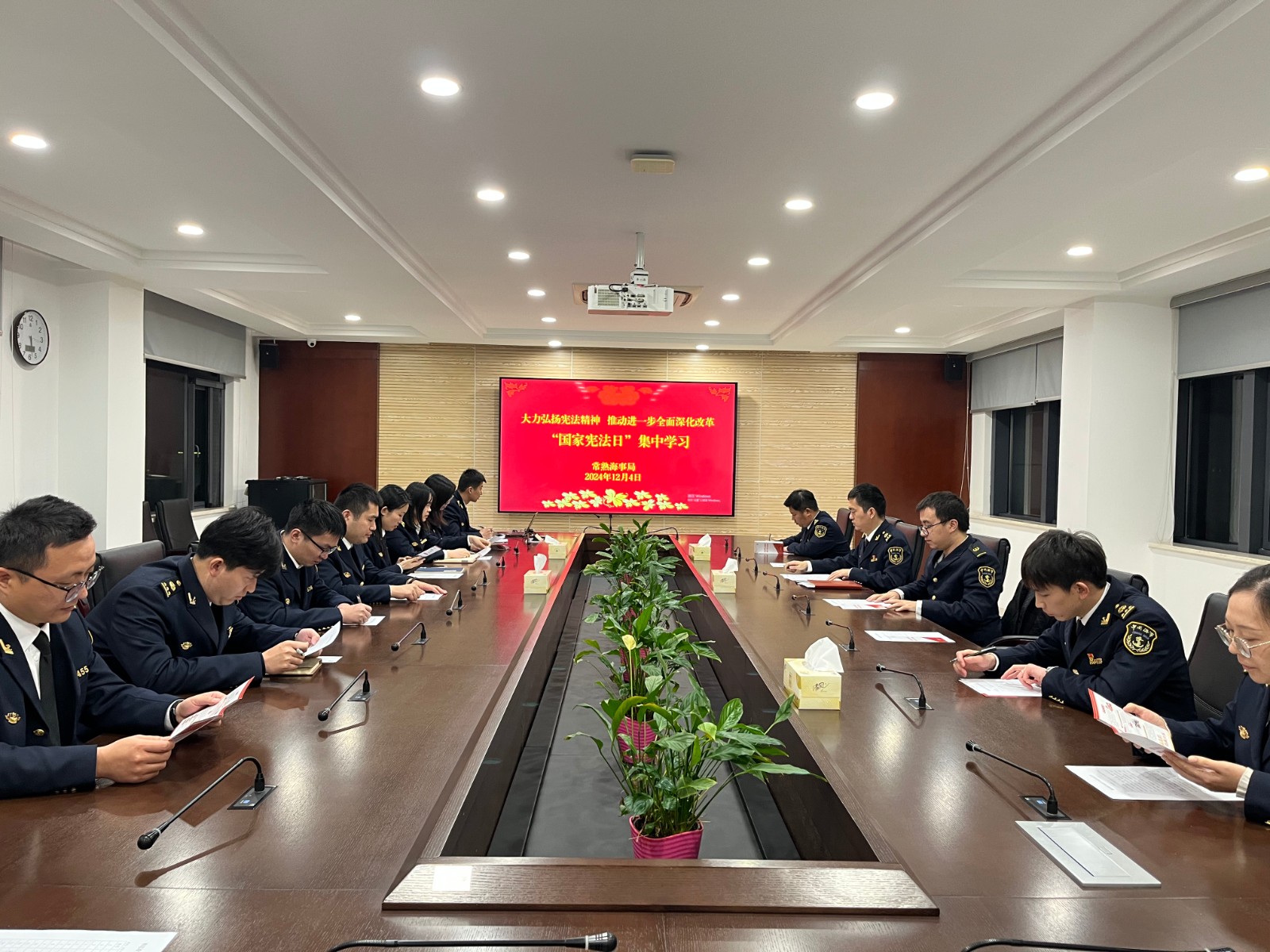 2024年12月1日至7日是第七个“宪法宣传周”,今年的主题是大力弘扬宪法精神,推动进一步全面深化改革。为深入学习宣传贯彻习近平法治思想,大力弘扬宪法精神、社会主义法治精神,常熟海事局集中组织开展系列法治宣传活动,推进宪法进机关、进企业、进网络。