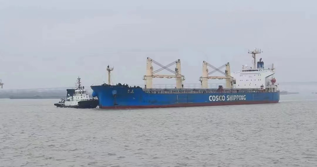近日,满载近46000吨利比里亚Bomi项目铁矿石的“安昌”轮,安全靠泊镇江港务集团10号泊位。