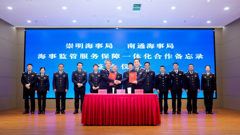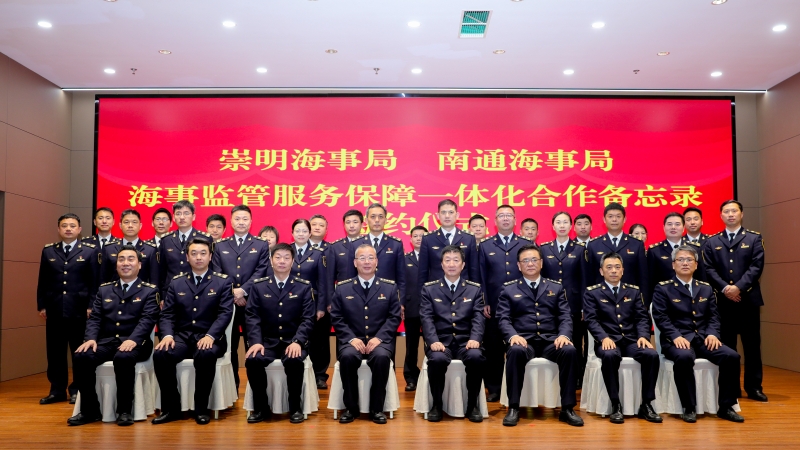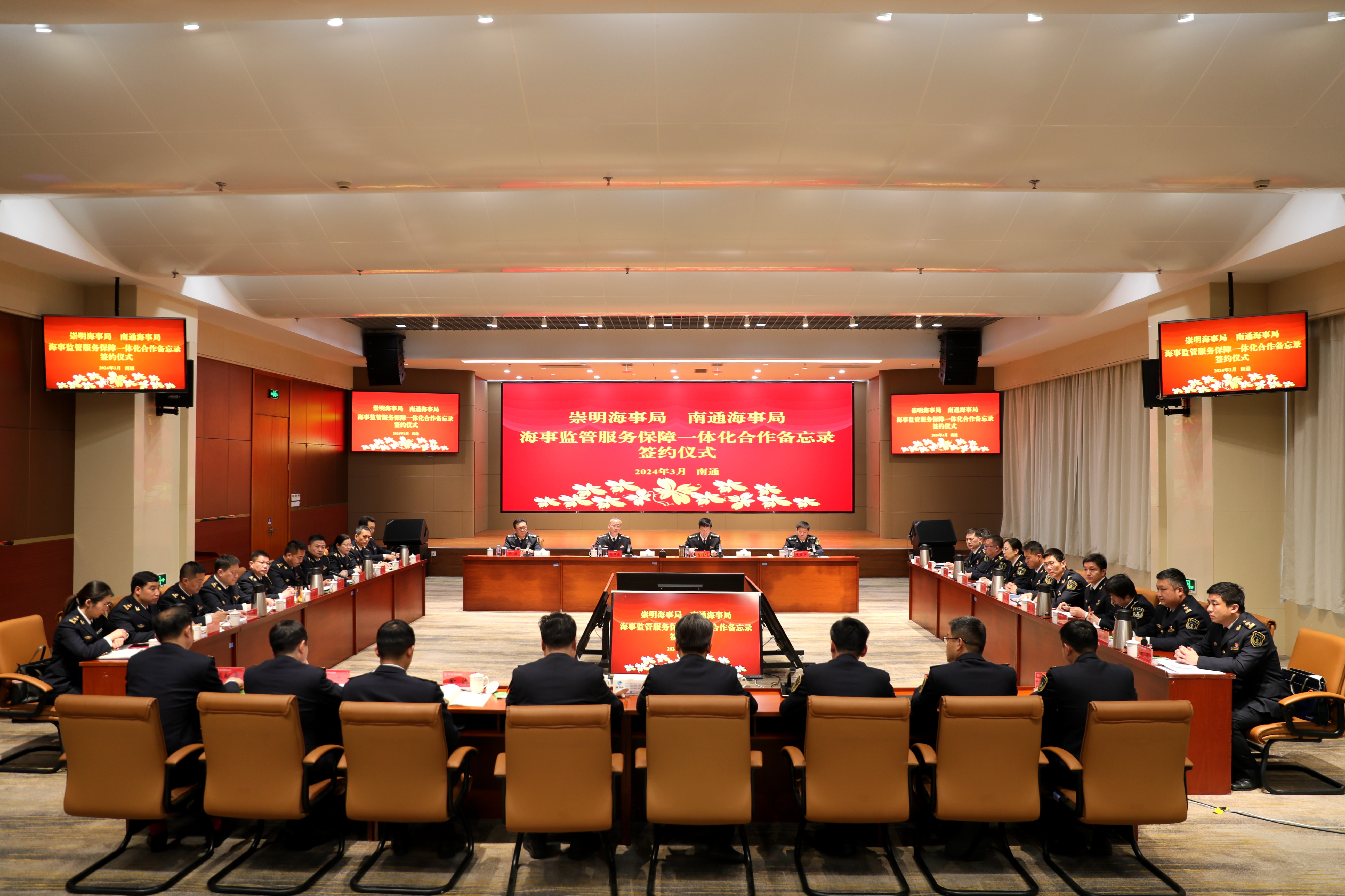 3月22日下午,崇明海事局与南通海事局在通签订《崇明海事局 南通海事局 海事监管服务保障一体化合作备忘录》。上海海事局谢群威局长、许骐副局长,江苏海事局朱汝明局长、李宏兵副局长出席此次活动。崇明海事局沈浩局长,南通海事局彭树林局长代表双方单位签署合作备忘录。
