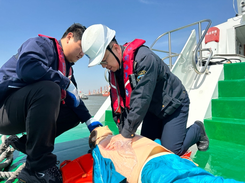 “海巡06403”通过甚高频发布人员落水险情,到达现场后迅速锁定人员位置,精准抛下救生圈,顺利营救落水人员上船,面对落水人员意识不清醒、无自主呼吸,执法人员立刻对落水人员开展心肺复苏急救,迅速靠岸后交急救中心救治。