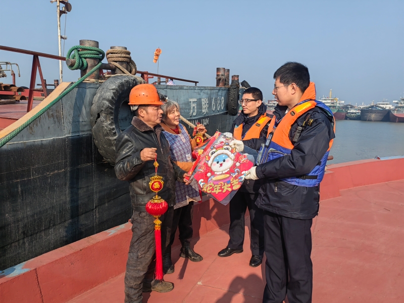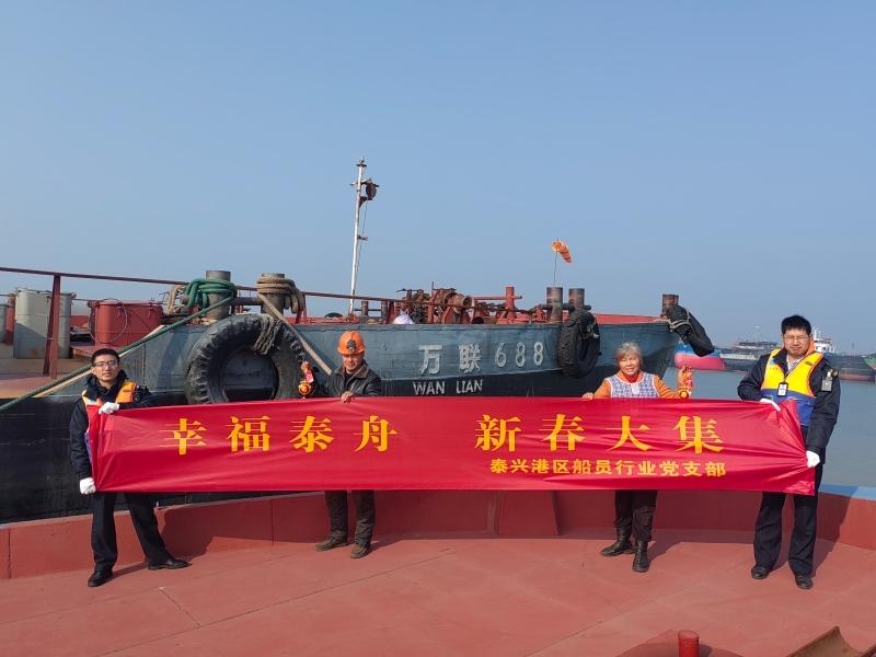 春运大幕开启,为营造良好的水上交通安全环境和欢乐祥和的春节氛围,提升广大船员的获得感、幸福感和安全感。1月21日,泰兴港区船员行业党支部开展“幸福泰舟 新春大集”主题活动,登上返乡船提前向船员送上春节祝福。