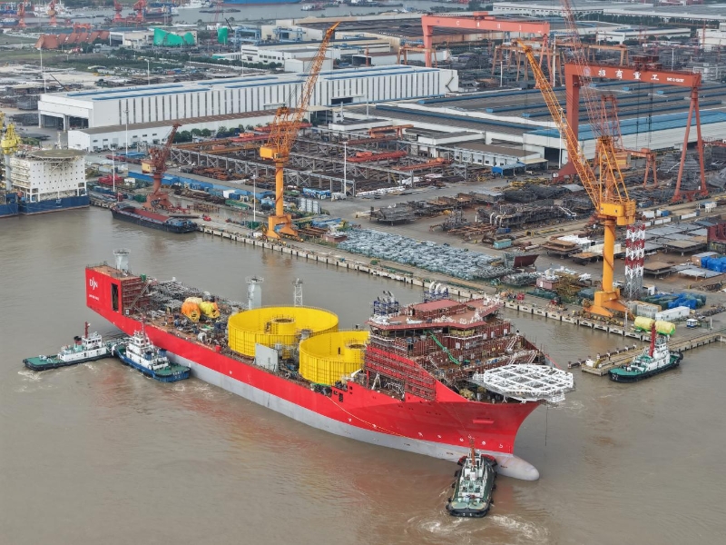 为保障该轮顺利下水,南通海事局提前部署、精准服务。一是构建全方位水上交通组织体系。充分发挥全要素水上“大交管”效能,运用VTS、CCTV和无人机巡航等科技手段,对下水作业水域实施全过程、多维度动态监控。提前发布航行警告,划定临时安全作业区,协调疏导区域内其他船舶,为重大件作业清理出充足的安全水域。二是加强现场管控与应急响应。实施精准交通管制,远程调度与海巡艇现场指挥相结合,引导上下水船舶进入安全水域抛锚,及时恢复通航秩序,避免碰撞风险;优化“四直通道”,缩短船舶等待时间,提升通航效率;完善应急预案与责任落实,制定分级应急预案,应急力量24小时待命,确保突发情况快速响应、高效处置。三是提供全流程政务服务支持。主动对接招商工业海门基地,提前介入了解企业需求,开辟重大装备制造“绿色通道”,高效完成下水作业方案审批等多项手续。多次赴现场开展监督检查,指导船厂完善系固方案、优化下水工艺、健全应急预案,为船舶顺利下水提供了强有力的海事支撑。