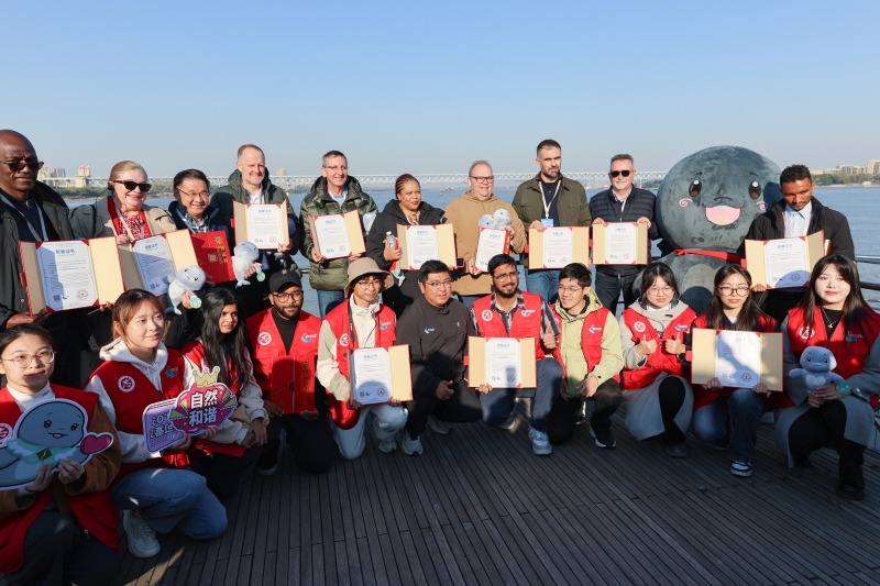 11月20日下午,“2025世界市长对话·南京”活动走进南京海事局,来自文莱、埃及、德国、意大利、塞尔维亚、纳米比亚、马来西亚、墨西哥、尼泊尔等国家的友好城市及联合国教科文组织创意城市网络城市二十余位市长及代表乘艇近距离观测长江江豚自然栖息状态,俯瞰南京长江大桥的雄伟身姿,远眺阅江楼的古朴风貌,通过“水上视角”沉浸式感受南京的长江文化魅力与发展活力。南京海事局戚学龙副局长全程陪同。