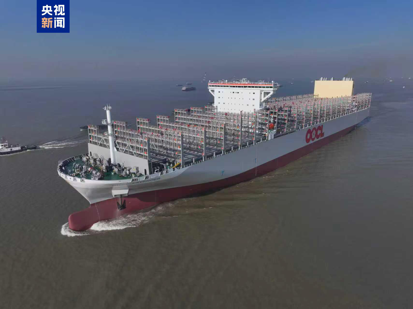 【央视新闻客户端】“巨无霸”出江!超大型集装箱船在江苏南通试航