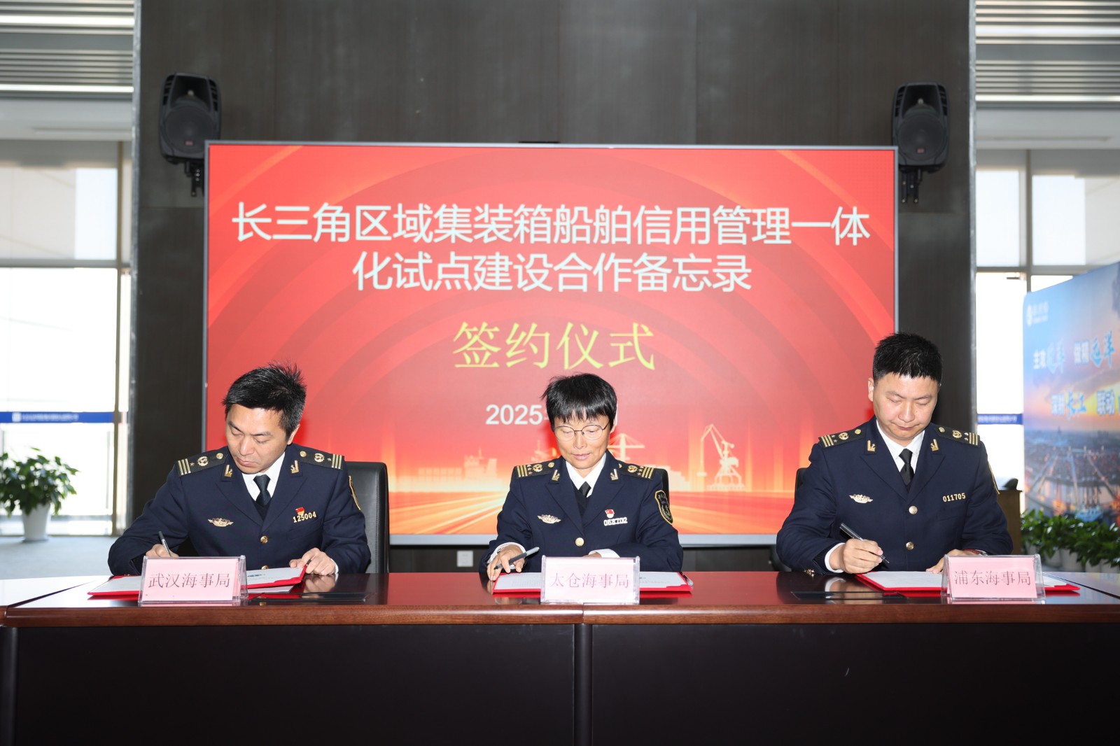 为贯彻落实长三角海事监管领域信用管理相关工作部署,推动长三角海事监管与服务保障一体化建设,12月16日,太仓海事局联合浦东海事局、武汉海事局在太仓港正和国际集装箱码头开展长三角区域集装箱信用管理工作调研,太仓海事局黄梅政委、武汉海事局左自德副局长、浦东海事局胡泽江副局长参加了本次调研,并联合签署《长三角区域集装箱船舶信用管理一体化试点建设合作备忘录》,共同探索构建长三角区域集装船舶信用管理一体化机制。