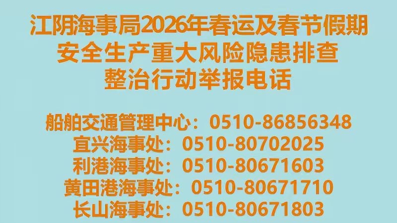 江阴海事局2026年春运及春节假期安全生产重大风险隐患排查整治行动举报电话