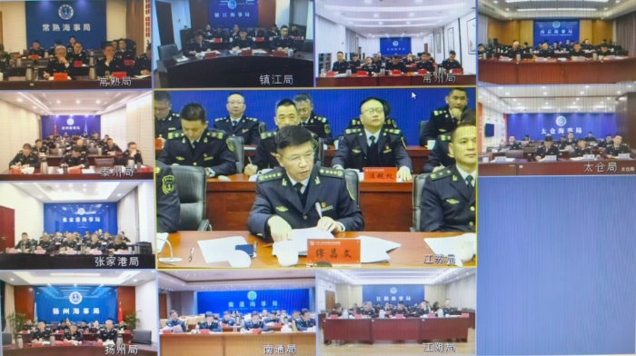 2025年12月25日,在收看交通运输部安委会全体会议暨交通运输安全监管视频会议及后续会议后,江苏海事局立即召开专题续会,就全面贯彻落实上级会议精神,深入开展春运春节重大风险隐患排查整治和元旦春节水上交通安全重大风险源提级管控两项专项行动进行动员部署。局党组书记、局长缪昌文出席会议并作总动员讲话。