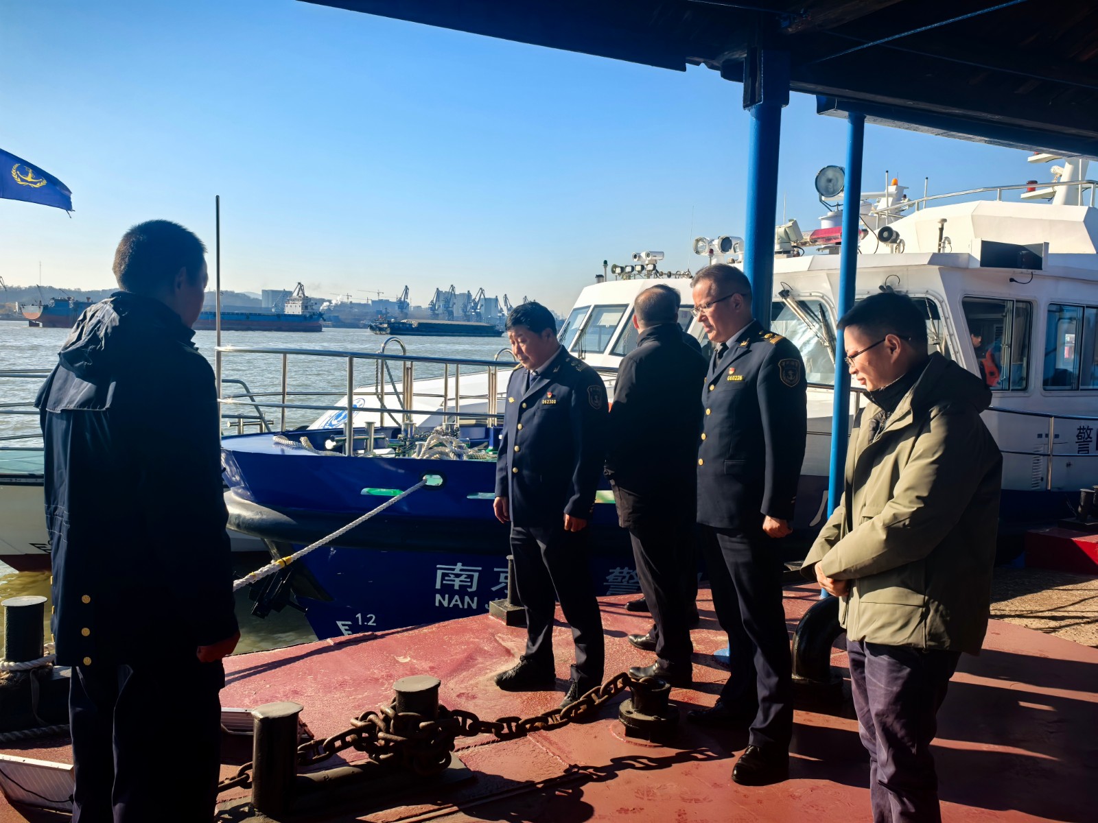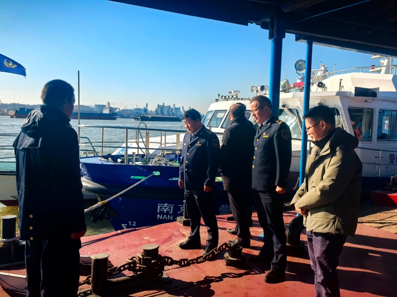为切实压实航运企业安全生产主体责任,深入防范化解水上交通安全风险隐患,全力保障岁末年初辖区水上交通安全形势持续稳定,近日,由长江南京段水上交通安全生产专业委员会办公室(南京海事局)牵头统筹,联合江北新材料科技园、江北新区大厂街道、长芦街道,以及南京市交通运输综合执法局五支队九大队、南京市公安局水上分局大厂派出所、大厂海事处等多家单位,组建联合检查组,在辖区宝塔水道开展安全检查。