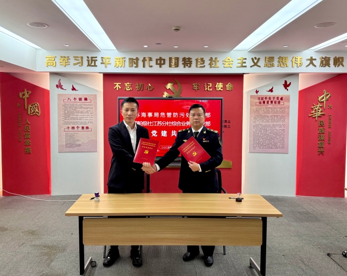 为深入贯彻落实党的二十大及二十届二中、三中、四中全会精神,践行新时代党的建设总要求和新时代党的组织路线,推动党建与业务深度融合,以高质量党建引领航运高质量发展,12月4日,江苏海事局危管防污处党支部与中国船级社江苏分社综合业务处党支部举行党建共建签约仪式,双方书记及党员代表参加活动。