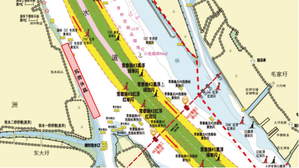 长江泰兴水道#75红浮下游下行船舶推荐航路南侧,上下游2400米,距右岸200米的水域范围内。