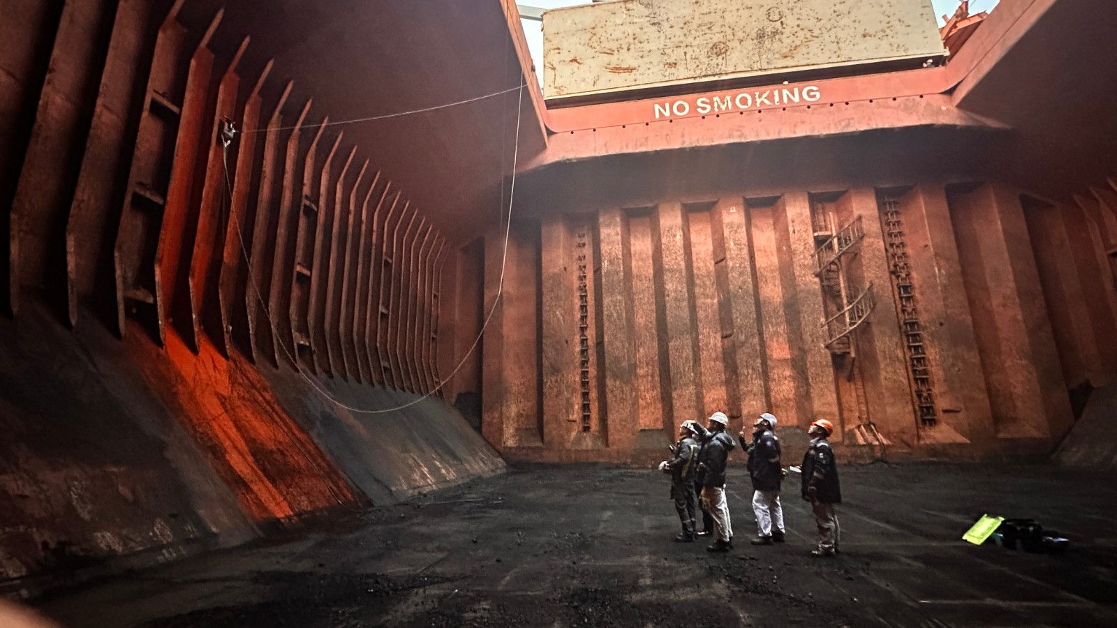 近日,常熟海事局会同中远海运散货运输有限公司对在港停泊的"远宁海"轮开展散货船洗舱机器人技术试验,此次试验为常熟港首次针对散货船舱室清洁的智能化技术验证。常熟海事局高度重视,安排技术骨干以"全环节参与+全流程指导+全要素服务"模式,精心保障试验安全顺利开展,共同打造绿色航运创新示范。