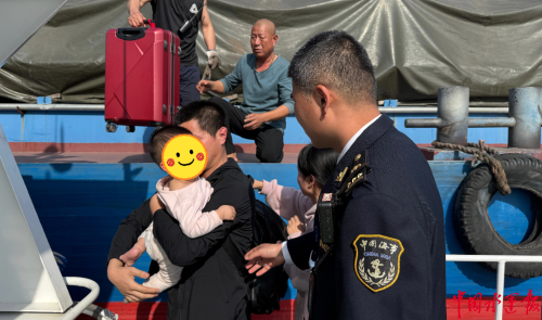 嘶马塔台值班人员通过智慧海事系统精准锁定船舶位置,第一时间调派正在辖区巡航的“海巡06409”轮赶赴现场。海巡艇接警后5分钟内抵达目标船舶,海事执法人员协助船员将患病婴儿及家属安全转移至海巡艇。