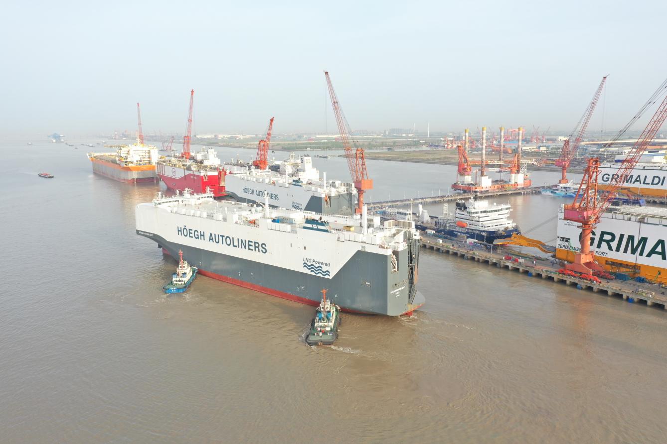 4月17日0700时许,在南通海事局的精心维护下,招商工业海门基地新造的第5艘9100车汽车滚装船从南通顺利出江试航。