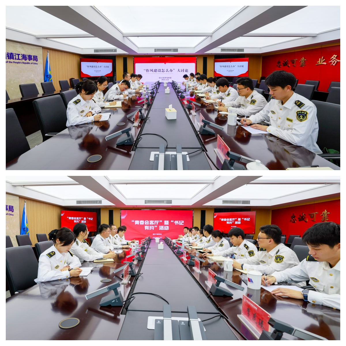 五四运动106周年即将到来,为进一步加强青年干部凝聚力与创新性,展现新时代青年朝气蓬勃、健康向上的精神风貌,镇江海事局团委策划开展“‘五’动青春‘四’意飞扬”系列活动。4月22日上午,镇江海事局团委组织局属各海事处、机关各部门青年职工代表一同开展“作风建设大讨论”、“青春会客厅”暨书记有约、“阅见青春”青年读书分享会等活动。