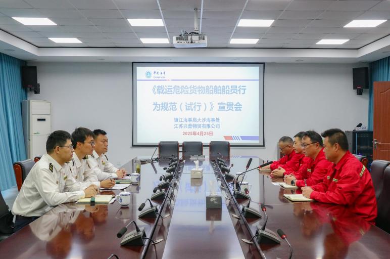 交通运输部海事局近日印发了《载运危险货物船舶船员行为规范(试行)》,为做好《规范》的学习宣贯工作,指导涉危船舶船员有效履职,镇江海事局迅速行动,积极组织内部学习、走访码头和航运公司宣贯,推动《规范》要求落实落地。