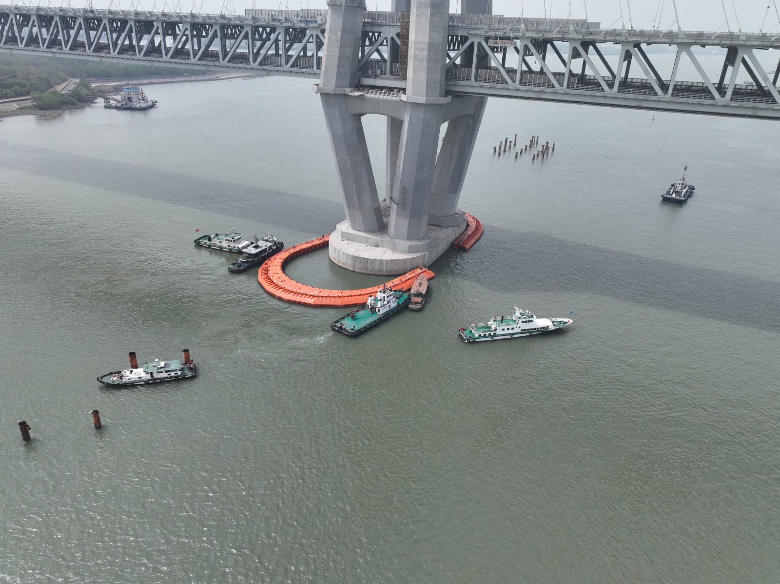 为保障大桥桥墩防撞设施安装作业安全,常州海事局多次与建设单位、施工单位沟通协调,提出海事意见优化施工计划;指导施工单位自查风险隐患并督促闭环整改;开设专窗安排专人密切跟踪施工船动态,点对点做好信息提醒;施工期间,局领导下沉一线随艇现场指挥,保障施工安全有序进行。