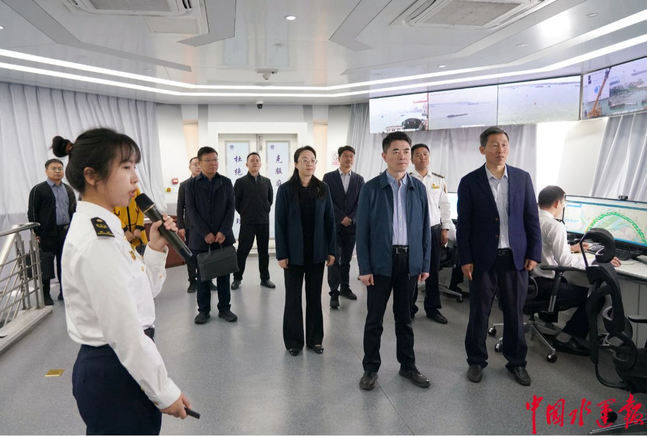 当日,共建组一行乘海巡艇调研长江江都段,沿途察看沿江产业发展现状。在扬州海事局嘶马塔台,详细了解了新型海事扬州样板建设情况,参观了“嘶马树”,实地感受海事科技赋能监管的创新实践与“坚守、担当、实干、创新”的“嘶马树”精神内涵,深入了解党建与海事业务融合发展成果。