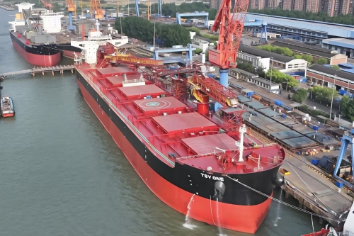 5月23日,全球最大重力式自卸船“曼哈迪”轮在江阴胜利交付,该船将驶向非洲利比里亚,为“一带一路”共建国家货物运输注入新动能。