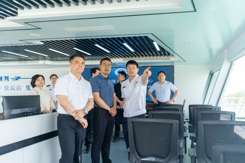 在大港海事处趸船,高志慧部长一行实地察看了趸船办公环境、内务秩序等,现场了解了学习生活区、执法办案区、工作办公区等功能区间布局详情,重点了解了船员法律援助工作站、快反处置中心和港航综合调度中心工作运行情况,现场观摩了智能无人机库等信息化设备在现场监管中的实际应用、海事全场景智能督察系统在执法督察工作中运用情况的演示等科目。