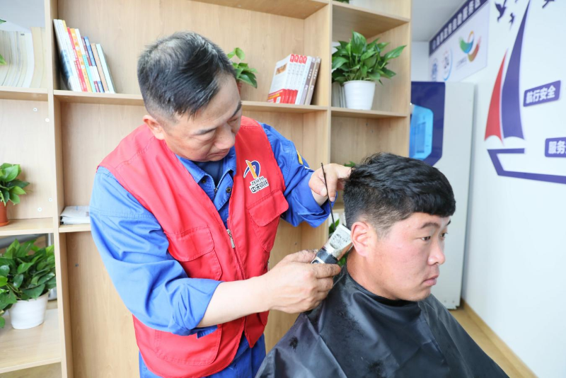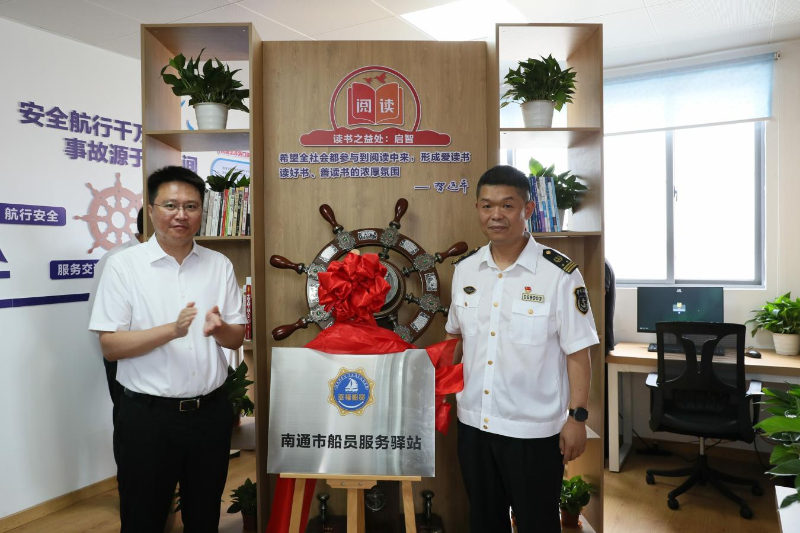 南通集“黄金海岸”和“黄金水道”于一身,航运业发达,年均进出港超35万艘次,吞吐量近3.6亿吨,涉及船员数量多,流动性大。据不完全统计,南通籍注册船员近6000名,常年在通工作船员近2万名。船员服务驿站的成立既是优化船员发展环境、增强职业吸引力的关键举措,也是海事服务“水运江苏”、海洋强市建设的重要体现。经过前期系统调研与精心筹备,南通海事局聚焦船员群体工作环境艰苦、岸上服务资源分散、权益渠道保障有限等问题,选址中天浩洋码头设立船员服务驿站,内设书报架、电脑、免费药箱、血压仪、自动售货柜等便民设施,配备海事政务自助服务终端1台,提供政务服务、生活保障、权益维护、文化关怀等,让船员群体真正感受到“水陆同质”服务。