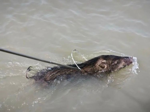“陆地坦克”下水了!野猪“专业泳姿”1小时横渡长江