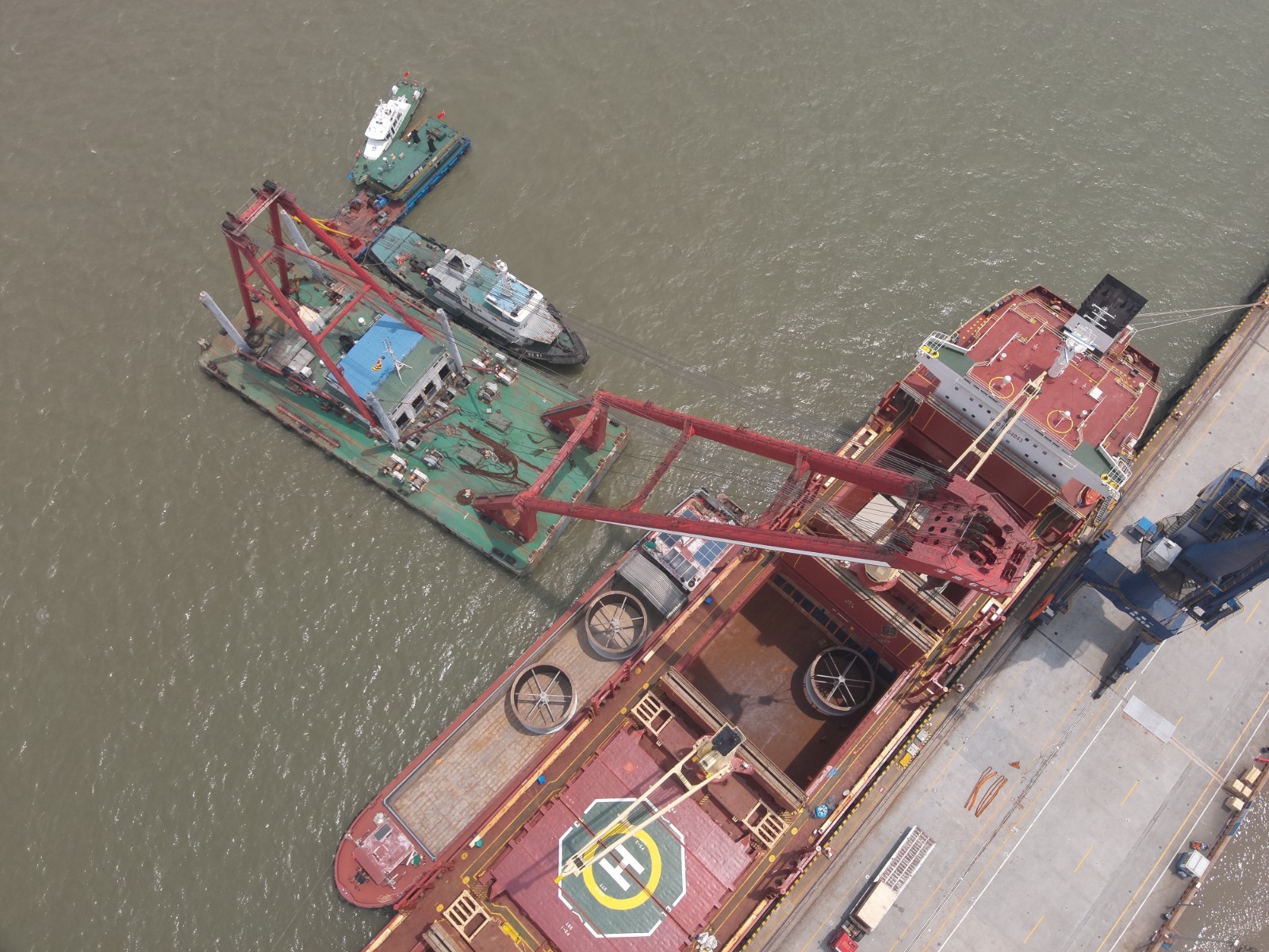 针对本次出口钢结构单件重量大、吊装精度要求高等难点,常熟海事局创新实施“三专三保”服务机制:一是专班对接,提前一周成立由指挥中心牵头,通航、船舶、危防多部门联动的保障工作组,组织港航企业、引航站召开协调会,量身定制“潮汐+气象+通航”三维度作业方案;二是专项通道,开通国际航行船舶“绿色窗口”,运用“海事+海关”联合查验模式,将口岸手续办理时间压缩60%,确保船舶“零待时”靠泊;三是专业护航,投入海巡艇2艘、无人机3架实施“水空立体监护”,通过智能CCTV系统对吊装作业全程录像监控,协调拖轮、警戒艇实施全程动态交通管制,确保作业期间码头前沿水域清爽。