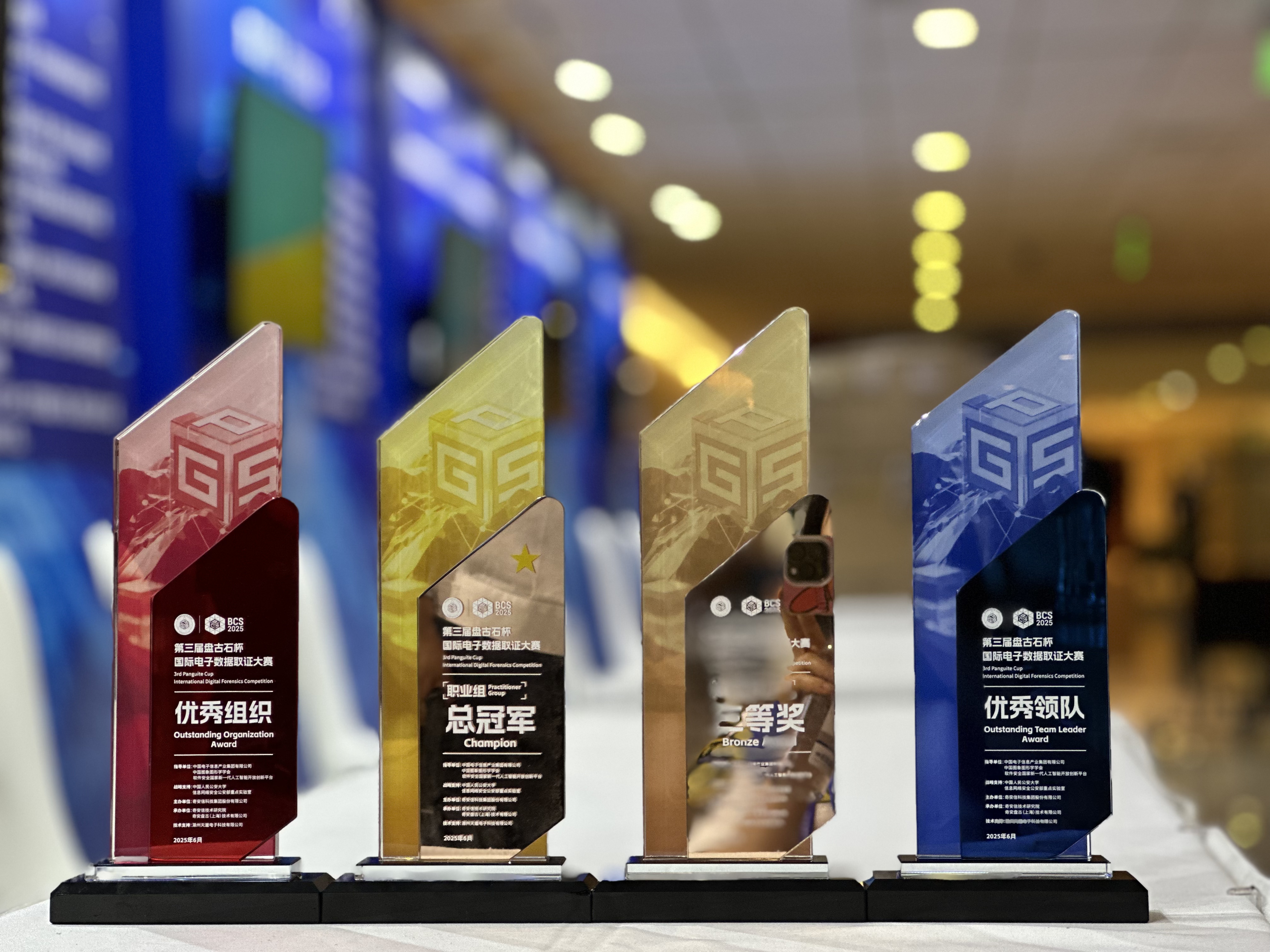 2025年6月5日,第三届“盘古石杯”国际电子数据取证大赛总决赛在北京国家会议中心圆满落幕。江苏海事局陈张奕、南京海事局陆鹏、张家港海事局李长宇组成的苏海一号战队获职业组总冠军暨一等奖第一名。南京海事局尹婷婷、李梦希和镇江海事局方志文获团体三等奖,江苏海事局获优秀组织奖,陈张奕获优秀领队奖。