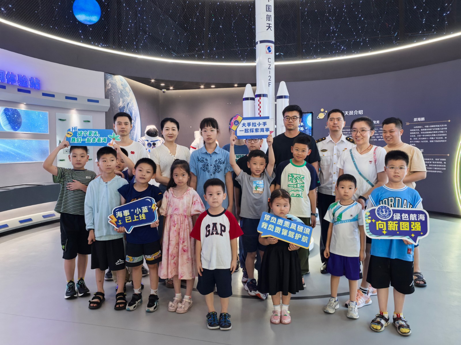 2025年7月11日是第21个中国航海日,今年航海日主题为“绿色航海 向新图强”。为进一步普及航海、航运知识,传承航海文化和海事文化,常熟海事局、常熟市船员行业党委联合常熟市船员行业工会联合会组织开展“星辰大海 携手同行”活动,邀请船员及其子女走进科技馆,开启一场融合航空、航天与航海的奇妙探索之旅。