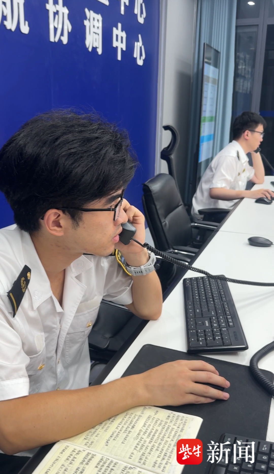 指挥中心工作人员钱博接听紧急电话
