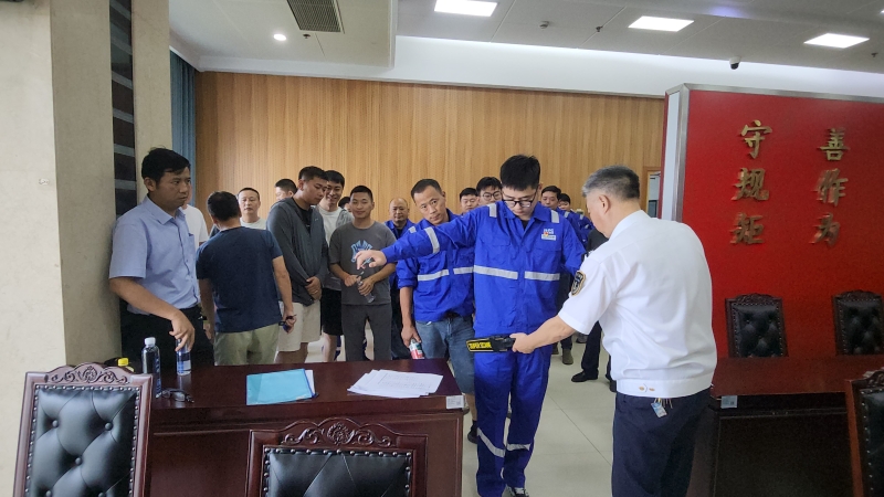 2025年内河船舶驾驶工种竞赛共分为理论和实操两部分,本次理论竞赛采用书面闭卷形式开展,分为单选、多选、判断、问答四种题型,内容涵盖了内河船舶驾驶专业所涉及的业务知识、相关法律法规及岗位基本实践知识等内容,试题内容与岗位工作需求紧密结合,各参赛船员在1个小时的紧张竞赛中表现出积极的竞技状态,通过参赛查漏补缺,以赛促学,有效提升了船员理论知识水平和工作能力。开考前,监考人员在船员进场时认真比对船员身份证,使用金属探测仪防止考生携带电子设备进场,并在考场放置屏蔽仪,严防考试作弊行为。