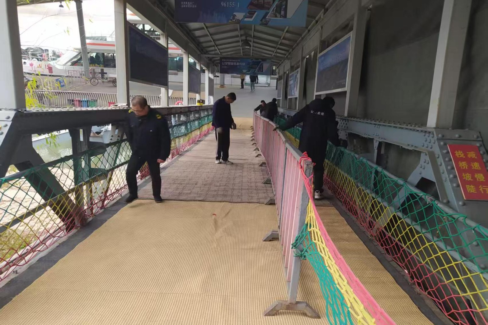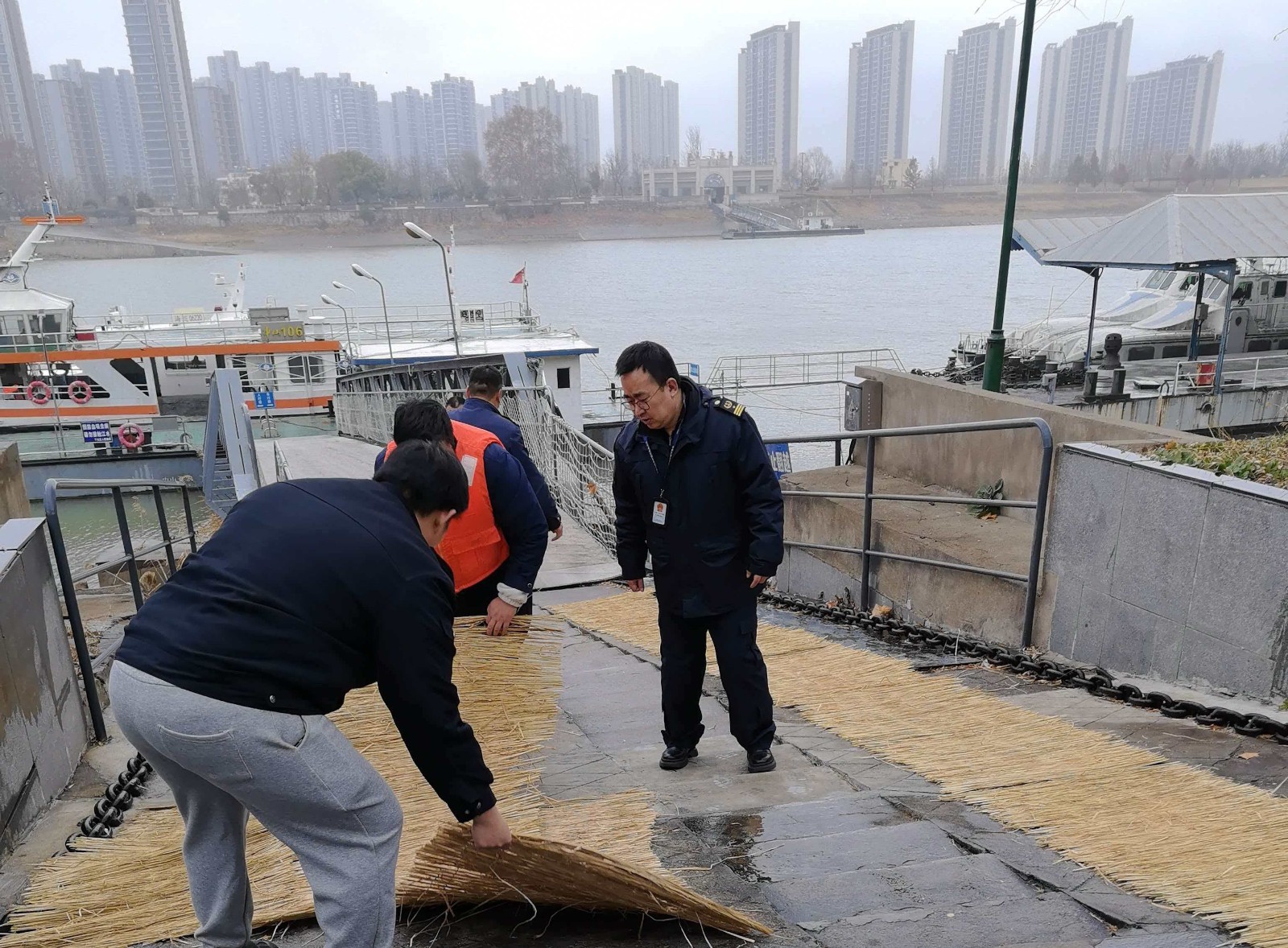 四是强化现场引导,保障通行安全。在渡运水域增派执法力量,加强现场监管和驻守。督促企业增派人员在栈桥、跳板等关键点位进行引导,协助老弱旅客安全通行,及时清理结冰积水;同时,通过广播提醒、增设警示标识等方式强化乘客安全意识。