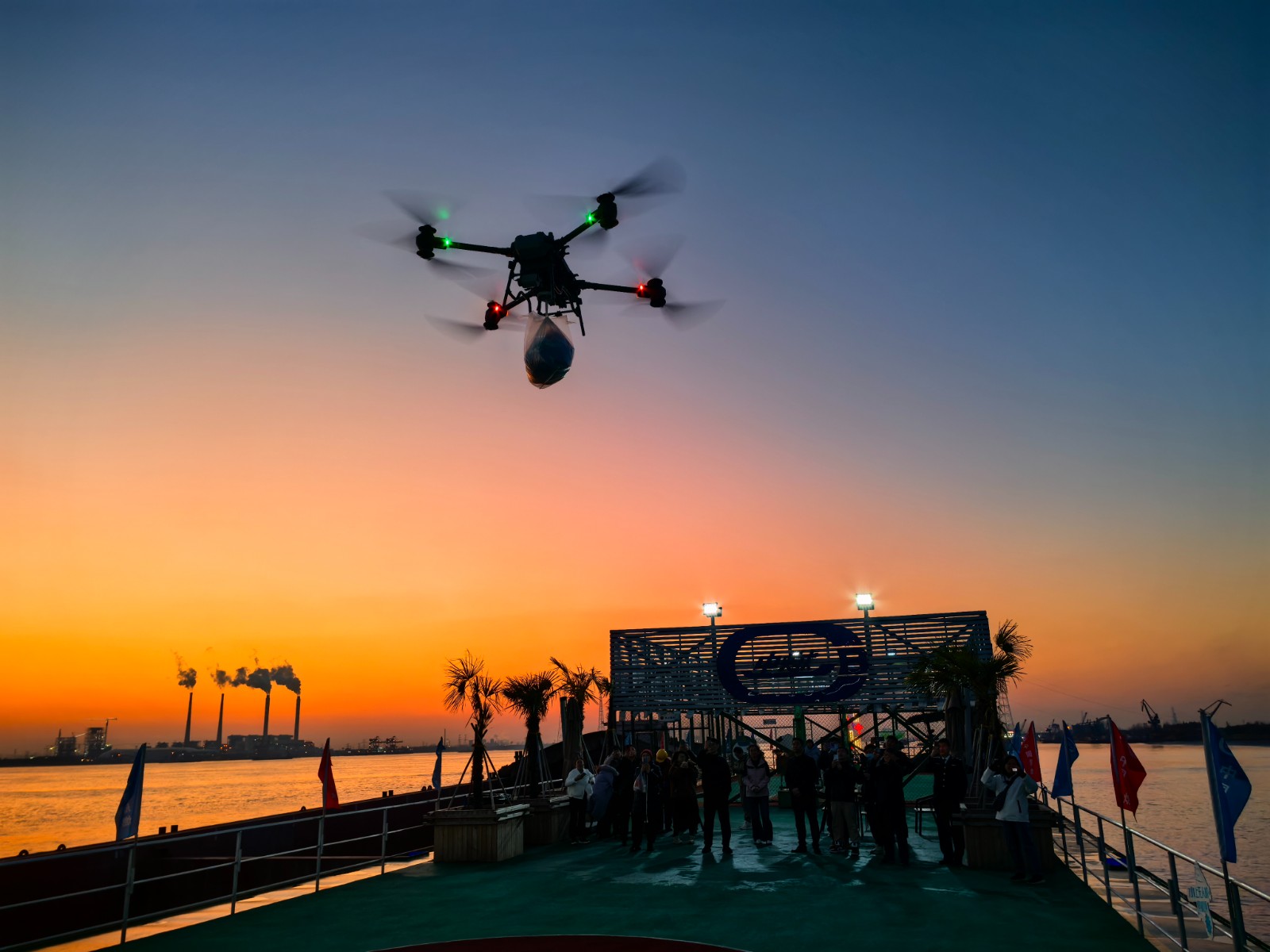 一是打造“水上超市”,丰富物资供应品类。围绕船员水上日常饮食、生活用品、船舶配件等需求,持续扩充丰富“水上超市”货品种类,着力打造“一站式”水上购物中心。二是发展“低空经济”,畅通船员购物渠道。创新采用“线上下单+无人机配送”方式,打通船员购物“最后一公里”,让船员无需下船即可完成物资采购,实现便捷度与安全性“双提升”。三是新建岸基分站,打造区域覆盖网络。在长江南岸新建岸基配送分站,与干流北侧服务区协同互补,突破无人机航程限制,形成覆盖干支流全域的“空中物流网络”,让更多船员享受到优质服务保障。