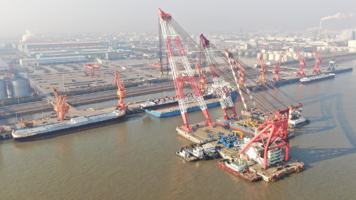 近日,在江苏常熟海事局全程护航下,荷兰籍大件运输船“波弗特海”轮在常熟港新泰码头完成9艘驳船吊装作业,这批“中国造”驳船将驶往荷兰鹿特丹港。其中单体最大重量达2800吨,刷新常熟港单件货物吊装重量纪录,标志着港口超大型件杂货接卸能力与海事服务保障水平实现新突破。