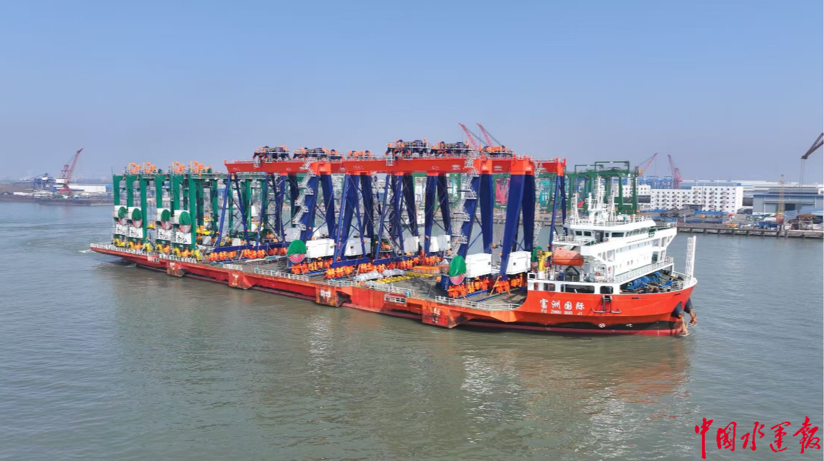 2月13日,农历腊月二十六,年味渐浓。在南通海事局海巡艇的现场维护下,大件甲板运输船“富洲国际”轮装载着14台自动化港机设备,从振华重工南通分公司码头鸣笛启航,驶向意大利热那亚港和荷兰鹿特丹Euromax码头,为中欧港口合作注入绿色智能新动能。