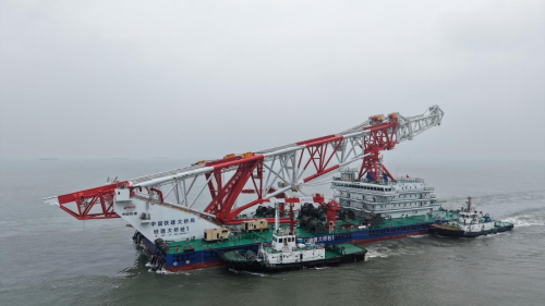 3月16日,在海巡艇现场维护及4艘大马力拖轮协助下,全球最高打桩船“铁建大桥桩1”轮顺利离泊江苏大津重工有限公司南通基地码头,前往东海试航区开展试航作业。