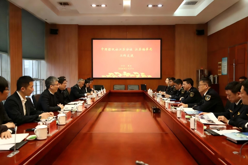 2月27日上午,中国船级社江苏分社总经理庄重、党委书记周驰、副总经理黄林生一行来局开展工作交流。江苏海事局缪昌文局长、马一意副局长、潘江华纪检组组长、郑跃峰二级巡视员出席会谈。