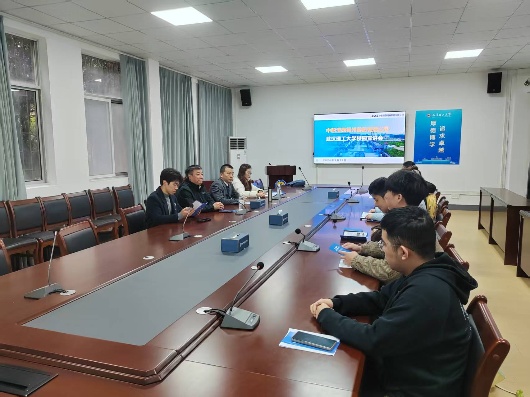 3月18日,为进一步强化高技术船舶与海工装备产业链人才支撑,高技术船舶与海工装备产业链综合党委办公室主任徐成武会同扬州中船澄西船舶有限公司罗伏祥董事长一行,专程前往武汉理工大学开展2026年春季校园专场招聘,效果显著。
