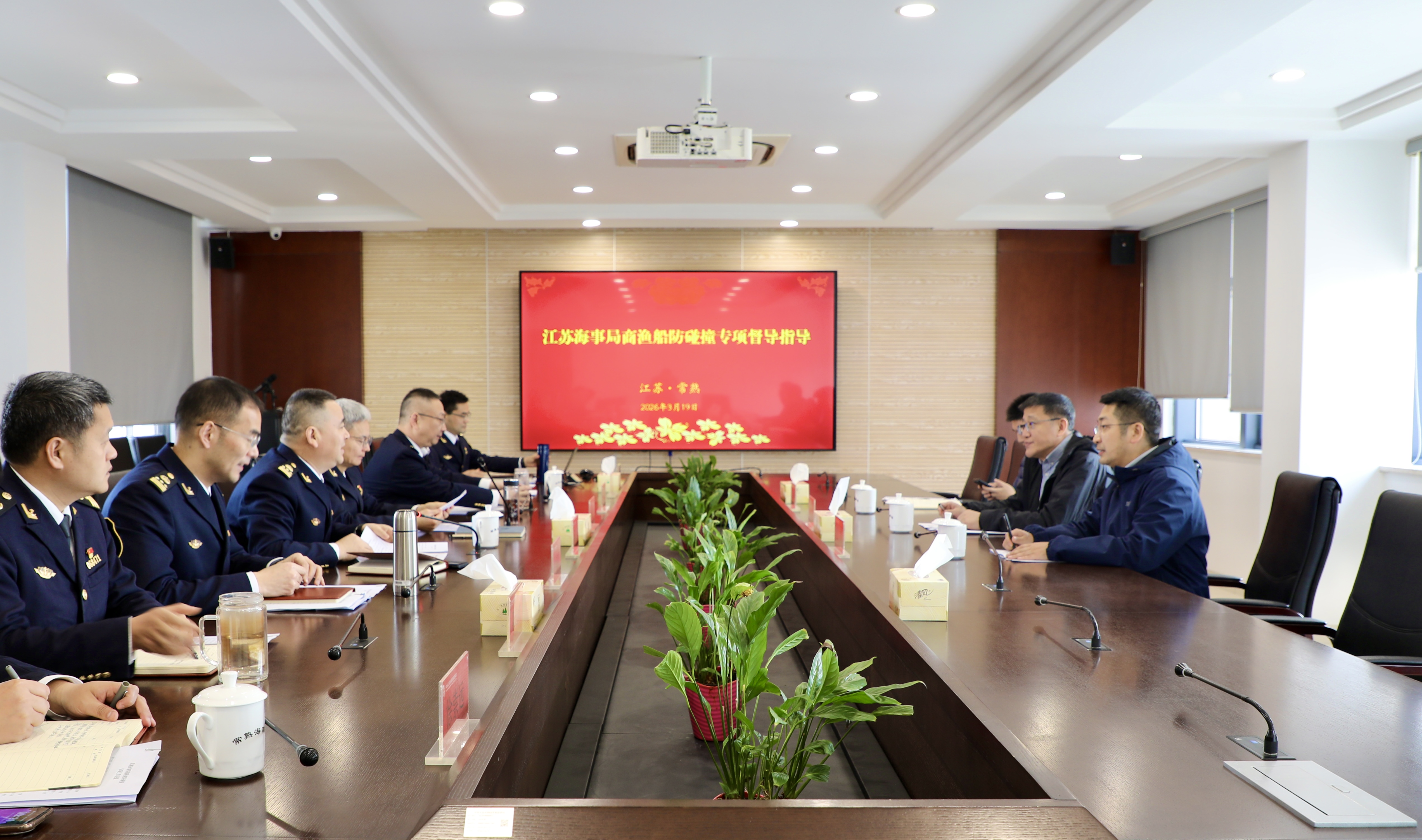 3月19日上午,江苏海事局马一意副局长带队到常熟海事局督导商渔船防碰撞工作并开展调研检查。江苏海事局安全处、船舶处相关人员,常熟海事局领导班子及相关部门负责人陪同参与。