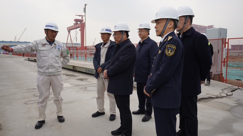 近日,扬州市委常委、宣传部长张小辉赴江都经济开发区,专题调研扬州中远海运重工绿色智能造船提升工程。扬州海事局党委书记、局长费中强,江都区政府副区长李洋,江都经开区管委会主任石利锋等陪同调研。
