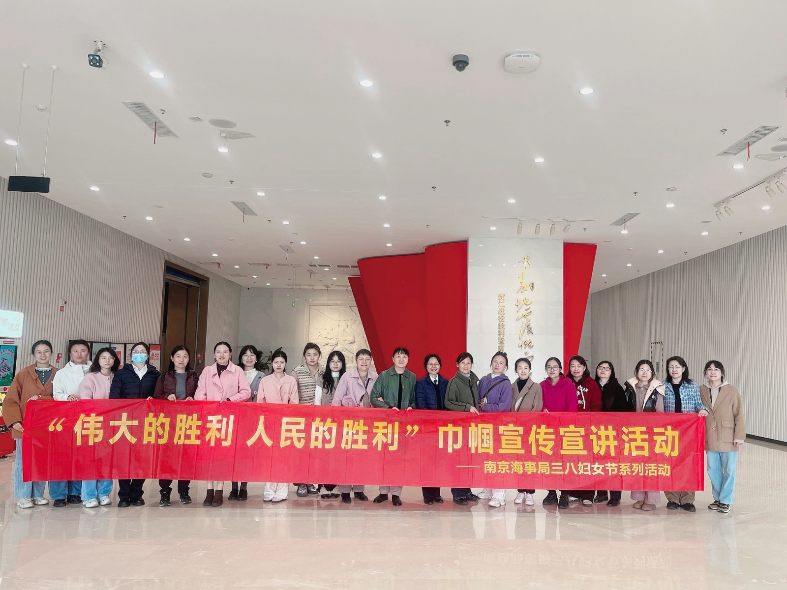 根据南京市总工会2026年“三八”妇女节主题宣传服务月活动安排,3月26日下午,南京海事局组织20余名女职工走进渡江胜利纪念馆,紧扣“巾帼力量 向新而行”活动主题,开展“伟大的胜利 人民的胜利”现场教学,以“现场教学+微党课”的沉浸式学习模式,厚植爱国情怀,凝聚海事巾帼力量。