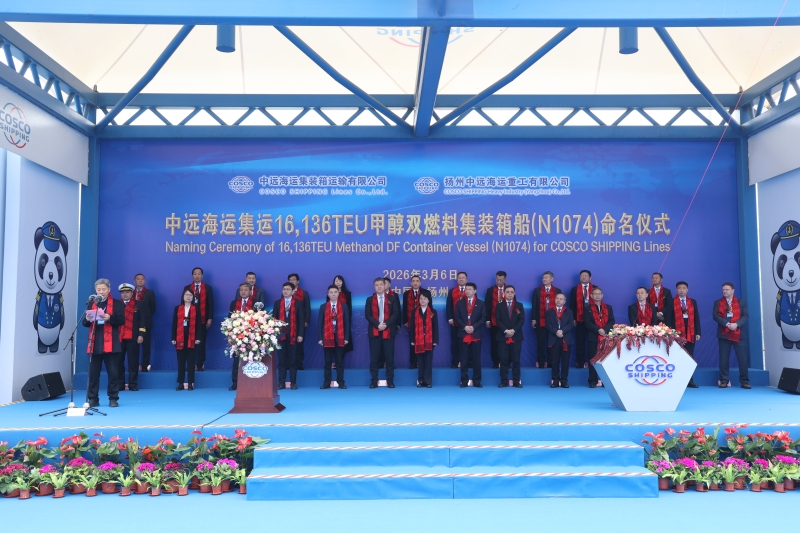 2026年3月6日,扬州中远海运重工有限公司为中远海运集装箱运输有限公司建造的16136TEU甲醇双燃料集装箱船“COSCO SHIPPING LILY”轮命名仪式在扬顺利举行。江苏海事局党组书记、局长缪昌文应邀出席活动。